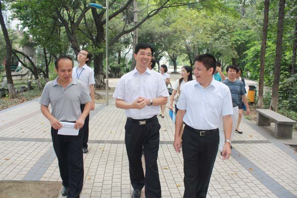 | 图为彭加文(右)一行在许志军(中)等的陪同下参观学院校园。 |