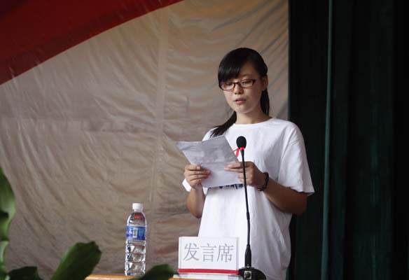 图为金江校区新生代表,机械工程系机械制造专业黄婷婷在发言。