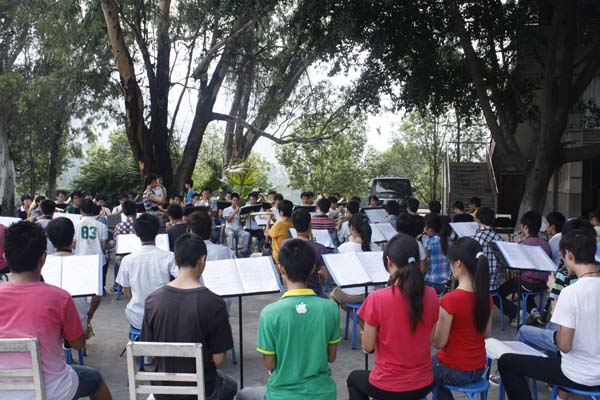本站讯(马琪报道)为进一步提高学院学生艺术团水平,不占用正常学习时间,暑假期间,学院基础部艺术室组织学院学生艺术团管乐队、民乐队、舞蹈队、合唱团利用假期集中排练。800余名学生艺术团学生参加排练。