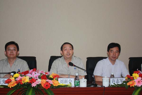 | 图为攀钢党委副书记、工会主席刘新会(中)在讲话。右为许志军、左为谢玉先。 |