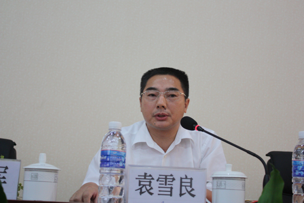 图为党委副书记袁雪良主持大会并就贯彻落实大会精神提出要求。
