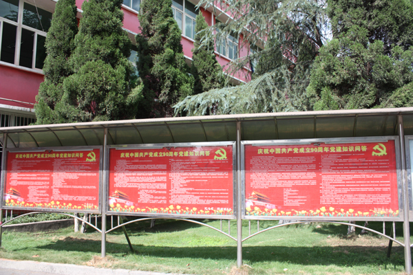 本站讯(马琪报道)“七一”将至,为隆重庆祝中国共产党成立90周年,日前,学院党委在学院马家田、金江校区制作“庆祝中国共产党成立90周年图片展”和“庆祝中国共产党成立90周年党建知识问答”专题橱窗,全面展示中国共产党的光辉历程,普及党的基本知识、基本理论。