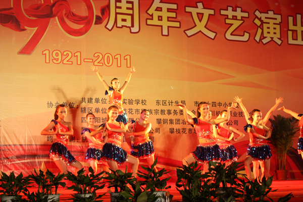 本站讯(马琪报道)6月10日晚,学院学生艺术团应攀枝花东区炳草岗街办民建社区的邀请,精选节目参加该社区在市中心广场举办的“建党90周年广场文艺晚会”演出。党委书记、院长许志军,党委副书记、工会主席袁雪良出席晚会并与东区宣传部、区政府有关领导一起观看演出。