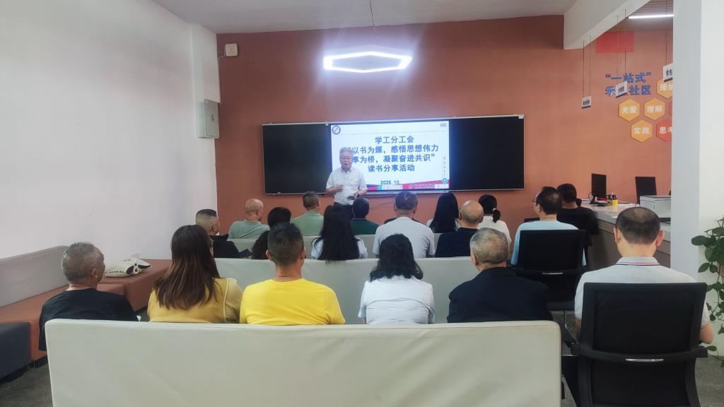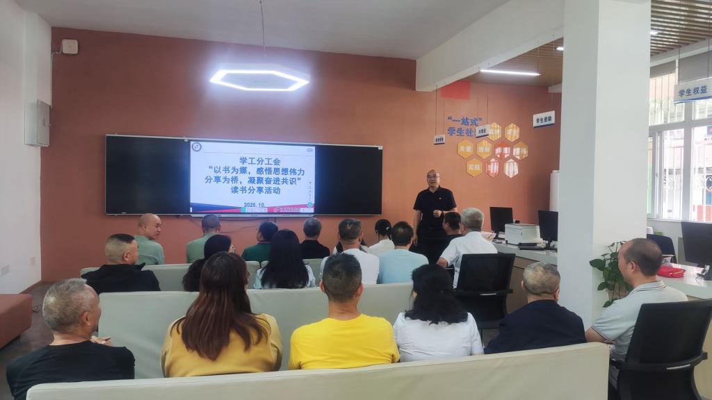 (学生处黄潇仪)为大力建设书香社会,营造笃学尚行的浓厚氛围,通过阅读与交流,引导全体教职工坚定价值引领、开阔格局视野,进一步凝聚团队奋进力量。10月31日下午,学工分工会在马家田校区一站式服务大厅成功举办了以“以书为媒,感悟思想伟力 分享为桥,凝聚奋进共识”主题的读书分享活动。