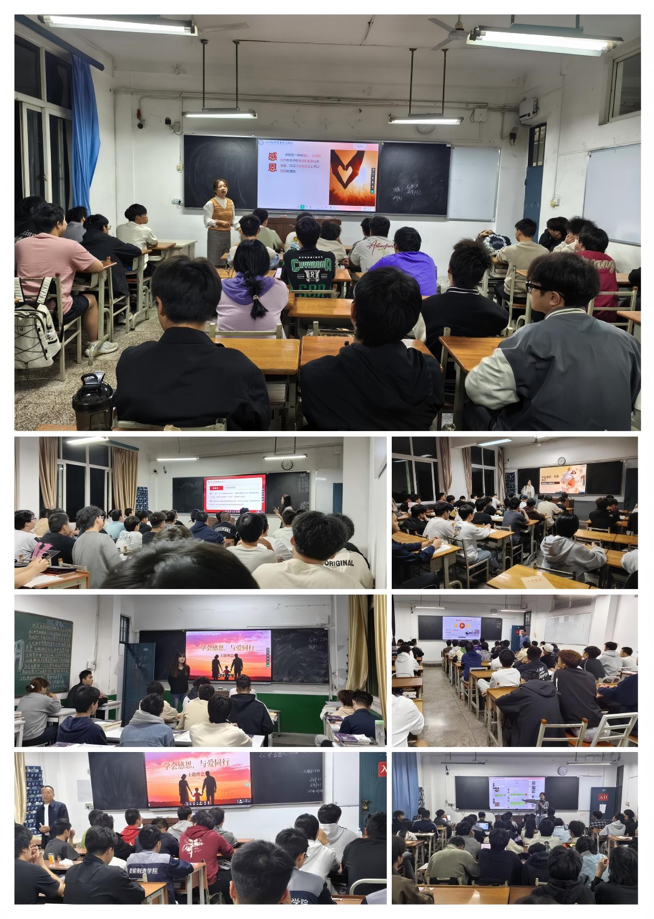 (智能制造学院罗蔡玲)为培养学生常怀感恩之心、勇于担当责任,11月16日晚,智能制造学院在马家田与金江两校区组织各班级开展了“学会感恩,与爱同行”主题班会。学院负责人深入班级现场观摩指导,与同学们亲切交流。