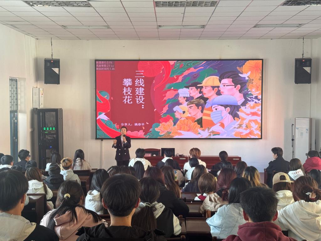 (管理学院 何光辉 学生朱丹)为深入了解“攀枝花”历史,传承和弘扬城市精神,11月26日下午,副校长姚春早深入管理学院上思政课,为师生带来《三线建设——攀枝花》专题讲座。