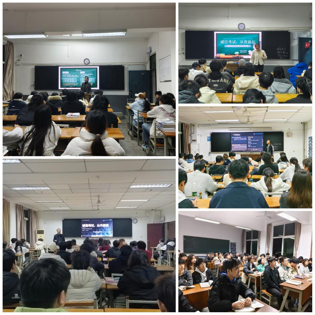 班会从“诚信”的内涵切入,通过宣讲与典型案例剖析,引导学生深入理解诚信不仅是个人立身之本,更是一种为人处世的责任、安身立命的准则、终身受益的品格。在考风考纪宣讲环节,各班辅导员围绕“四提倡、四反对”展开细致解读,要求同学们秉持“一分耕耘,一分收获”的务实态度诚信考试。辅导员还分享了科学复习方法与时间管理技巧,鼓励大家系统梳理知识、从容备考。