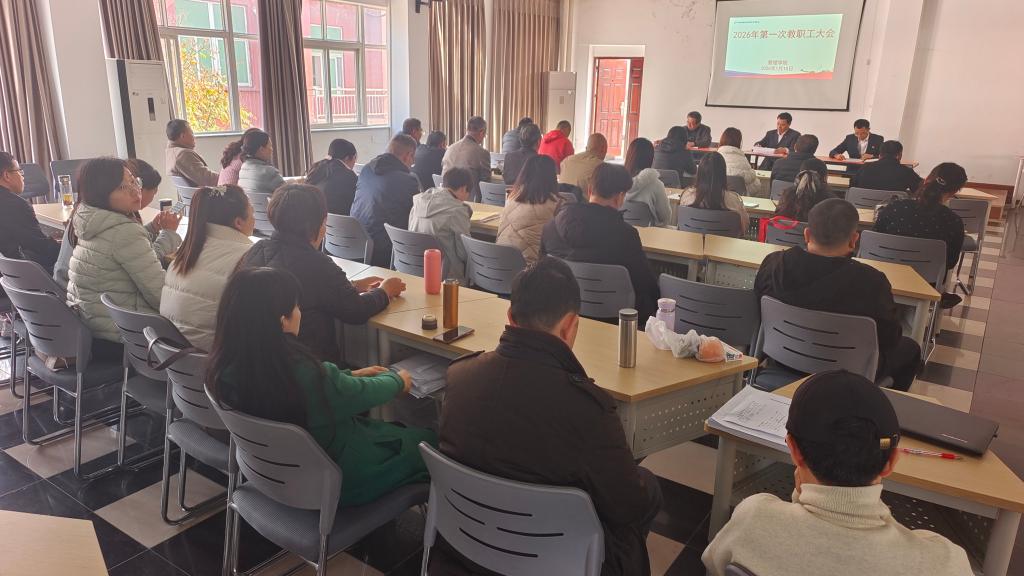 (管理学院王杜刚、图祝伟)1月15日下午,管理学院召开2026年第一次教职工大会,全体教职工齐聚一堂,总结2025年工作,部署新学期重点任务,为学院高质量发展凝聚奋进合力。