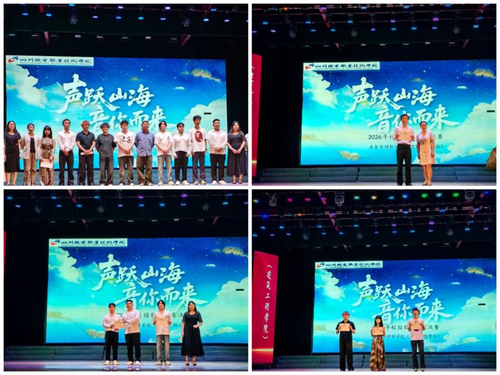(冶材学院(建工学院)胡钰霞、学生刘子涌)为丰富校园文化生活,展现学子青春风采,营造积极向上、活力满满的校园氛围,4月2日,冶金与材料学院(建筑工程学院)举行该院校园十大歌手决赛。经过3月份选拔筛选,两校区10名选手晋级决赛。全院师生齐聚一堂,用歌声传递青春热忱,以旋律彰显工科青年的蓬勃朝气与奋进姿态。经过激烈角逐,王梓涵凭借一曲《荒漠上行走》脱颖而出,摘得大赛一等奖桂冠。马小阳等3名同学、韩春等3名同学分获二、三等奖。