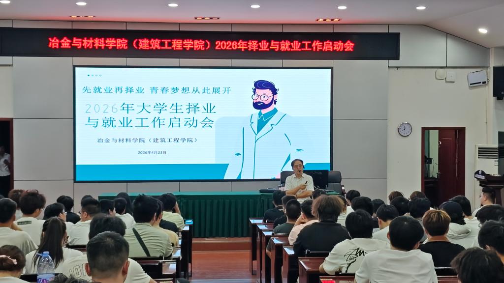 (冶材学院(建工学院)胡钰霞、杜柠霓)为扎实做好学生就业指导服务,引导学生树立科学择业观念、提升求职就业能力,近日,冶金与材料学院(建筑工程学院)面向24级全体同学举行2026年大学生择业与就业工作专题讲座。