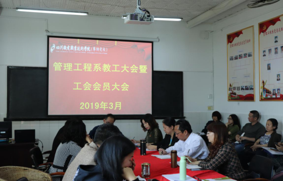 (管理工程系陈勇、祝伟报道)3月1日下午,管理工程系在二教410党员活动室召开系教工大会暨工会会员大会,传达学习学校七届五次职代会精神。