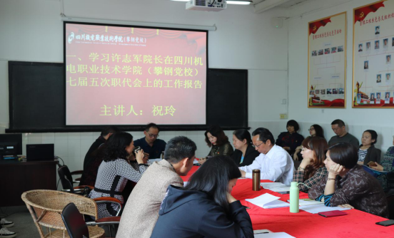 管理工程系负责人首先传达学习许志军院长在四川机电职业技术学院(攀钢党校)七届五次职代会上的工作报告,她指出许志军院长在七届五次职代会上回顾了2018年学院的主要工作共九个方面,2019年重点工作(8个创新)。她强调,报告激励我们要凝聚学校事业发展的一切正能量。尽心、尽力、尽责。争做推动学校事业发展的坚定者、奋进者、搏击者。为建设育人质量更高、办学实力更强、社会美誉度更高的高职院校而不懈努力!她要求,管理工程系要坚决贯彻落实。