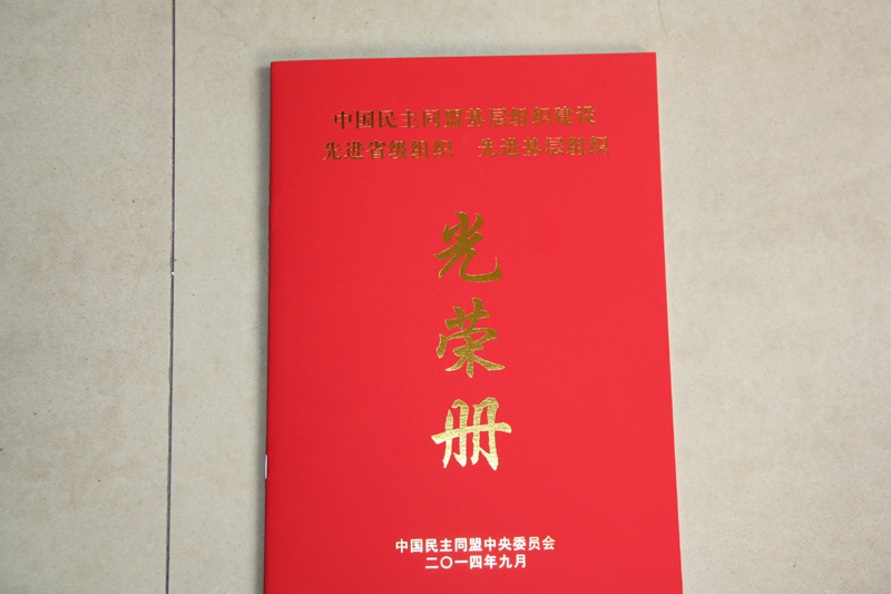 | 图为中国民主同盟中央授予先进基层组织的光荣册 |