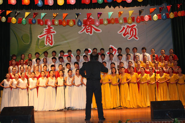 本站讯(学生记者黄兰霞 杜坤 秦开春 庄源)当岁月的年轮盘旋了七十多个轮回,先辈们“驱逐日寇!”、“保卫平津、保卫华北!”……依然在耳边回响。正值全国各族人民深入学习贯彻十八大时,12月6日、7日,学院分别在金江、马家田校区举行“我爱美丽祖国,献礼十八大”大合唱晚会,隆重纪念“12.9”爱国学生运动77周年。党委副书记袁雪良、院长助理李胜、张英民等出席晚会并与同学们一起观看演出。