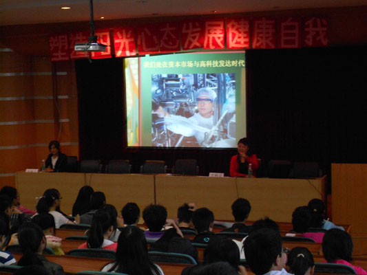 方老师以“如何塑造好的心态,并在当今社会中发现自身的长处”展开讲座。她从什么是阳光心态、认识自我是心理健康的前提、处在当今社会你需要拥有的有哪些、大学生基本素质等方面进行了详细的讲述。强调新生应以积极的心态去应对新环境、新集体、新生活,学会阳光思维,学会自主学习;正确认识自己,多找自己的优点;积极主动学习、沟通;重视形象礼仪,重视行为规范;在实践中不断地学习,不断地完善自我,明确目标,明确方向,永往直前,从而能使同学们快乐又充实地度过大学三年。在讲座过程中方老师还以幽默的语言带领大家体验阳光心态,并强调认识自我的重要性。(责编:马琪)