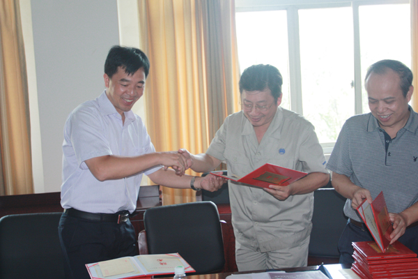 | 图为许志军(左)、程龙泉(右)给与会代表颁发聘书。 |