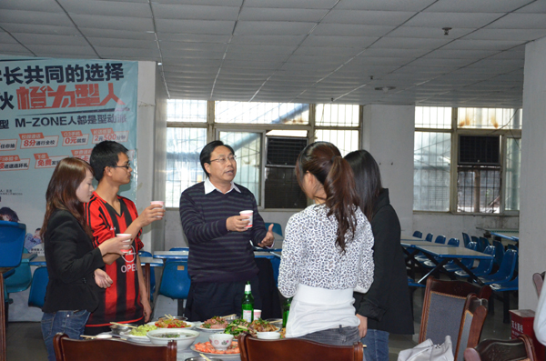 | 图为团年聚餐,张英民代表学院向留校学生祝酒。 |