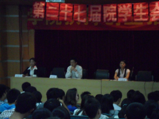 下午4:30,见面会正式开始,第二十七届院学生会对11级新成员的加入表示热烈的欢迎,对老成员的辛勤工作表示衷心的感谢;并各自介绍了主席团及各个部门的工作职责,做出计划、提出要求。