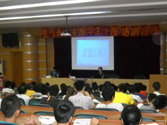 本站讯(学生记者曾婷 沈诗城)10月11日下午4点半,电子电气工程系第二学生党支部在学院学术报告厅二楼大厅举办“学生干部 修养三决”学生干部专题讲座,培训该支部学生干部。基础部理学教研室教师邓红副教授主讲。该支部学生会干部、各班班干部共200余人参加。