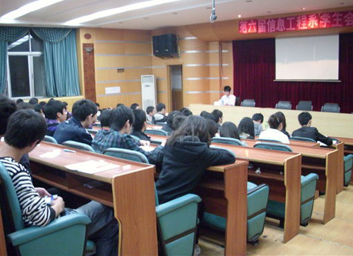 信息工程系第五届学生会主席对第五届学生会工作做了总结,并完成了学生会工作交接。