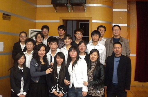 | 图为信息工程系主任刘松青(后排右一)、部分教师与该系新一届学生团总支、学生会合影留念。 |