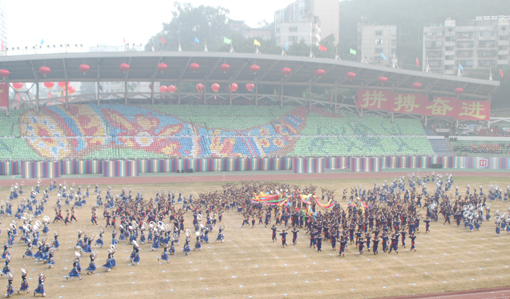 本站讯(马琪报道)10日上午,四川省第13届“攀钢杯”少数民族运动会在市体育场隆重开幕。开幕式上,我院1600名学生承担了大型团体操“阳光攀枝花”中篇——“绿耕”、“金宴”两个乐章的表演。表演现场,同学们饱满的热情,精彩的演出,赢得了现场观众的一致好评。表演结束后,运动会组委会专门致电学院领导,高度赞扬我院学生的优异表现。