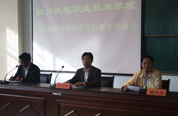 本站讯(学生处汪娜报道)10月10日上午,学院在合作办学点凉山州农校举行2010级五年制高职学生见面会。党委书记、院长许志军带领院招生就业处、财务处、学生处有关负责人出席新生见面会,对298名10级新同学表示欢迎并提出殷切希望。