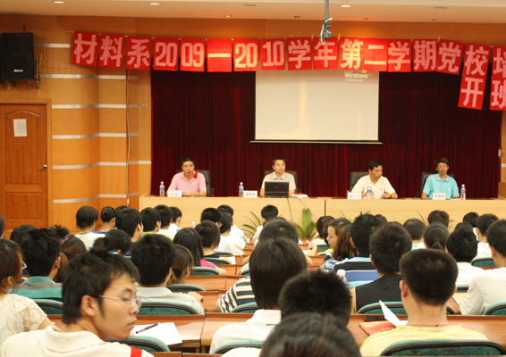 本站讯(学生记者 邹晓宏)5月20下午,材料工程系在学院学术报告厅举行2009——2010学年第二学期党校开班典礼。党委书记卢一、工会主席袁雪良出席典礼。