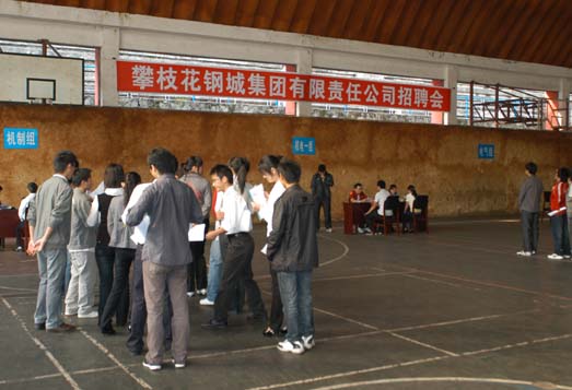 本站讯(马琪报道)继10月下旬攀钢(集团)公司到学院挑选2010届毕业生后,今日(3日),攀枝花钢成企业集团有限责任公司也到学院举行专场招聘会,面试挑选我院2010届毕业生。