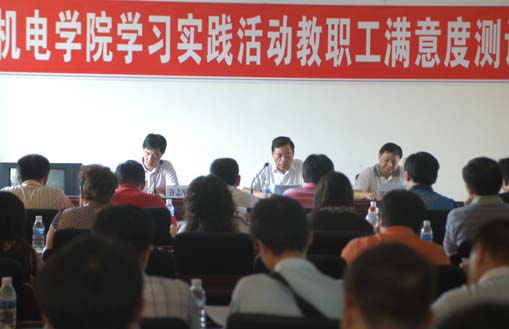 本站讯(马琪报道)8月28日下午,学院党委、学院学习实践活动领导小组在学院三会议室召开学院学习实践活动教职工满意度测评大会。党委书记、学院学习实践活动领导小组组长卢一作《机电学院开展学习实践活动情况报告》,向参加测评大会的代表报告活动开展情况,重点介绍整改落实情况。院长、学院学习实践活动领导小组组长许志军主持测评会,并对巩固活动成果,进一步推动学院持续健康发展提出要求。学院各系(部)、机关各职能部门干部代表、党员代表、职工代表、先进模范代表、民主党派代表54人参加测评大会。